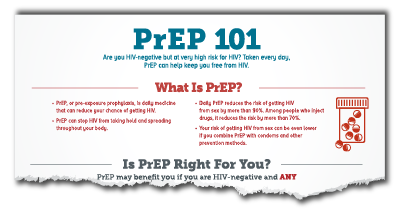 PrEP is a medicine that can reduce the risk of getting HIV from sex by about 99% when taken as prescribed.